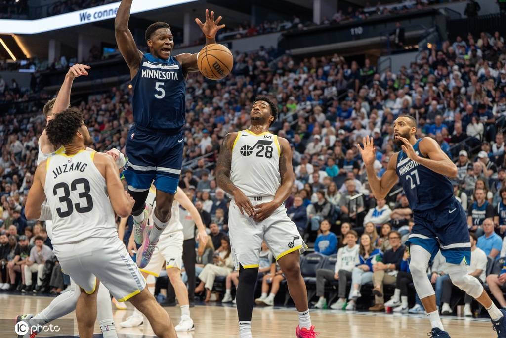 森林狼队首发:安东尼-爱德华兹、鲁迪-戈贝尔、朱利叶斯-兰德尔、贾登-麦克丹尼尔斯、迈克-康利