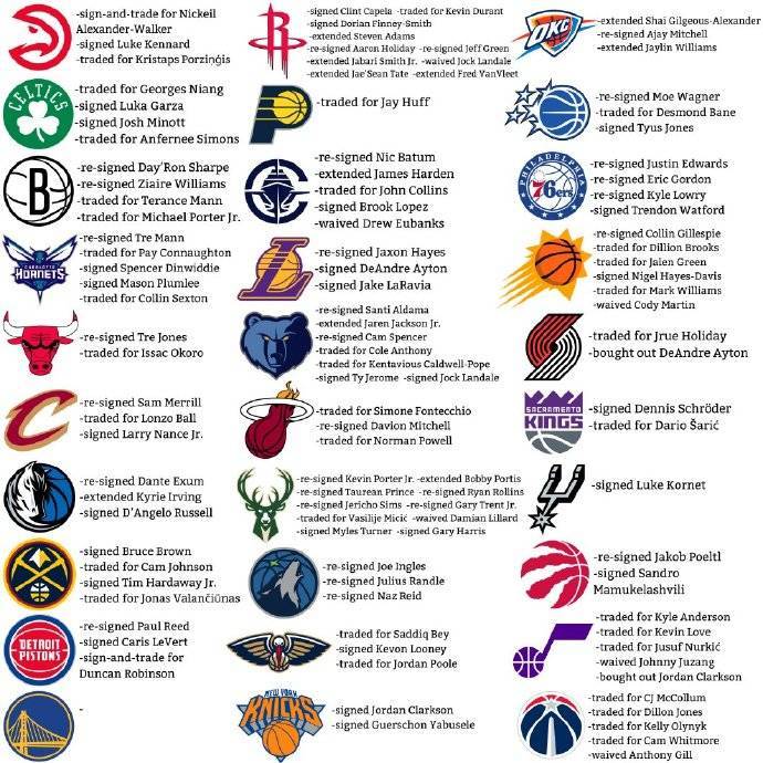 北京时间2025年7月8日,美媒统计了自由市场开启以来联盟各队的操作。